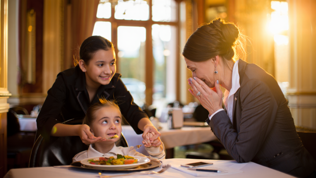 Elena sat back down, but this time, she pulled her chair close to Lily. She picked up a napkin. “Show me that trick with the ballerina fork?” she asked her daughter.
