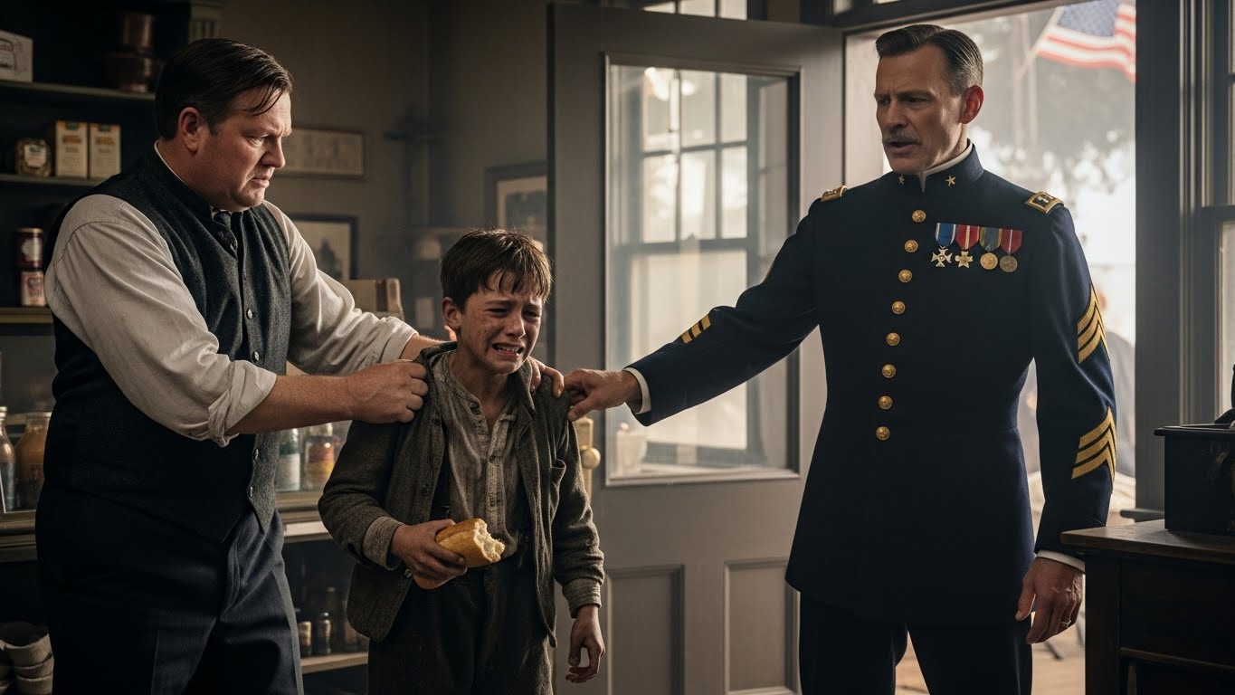 The store manager dragged the starving orphan by his hair… But then a 4-Star General walked in and asked one terrifying question.