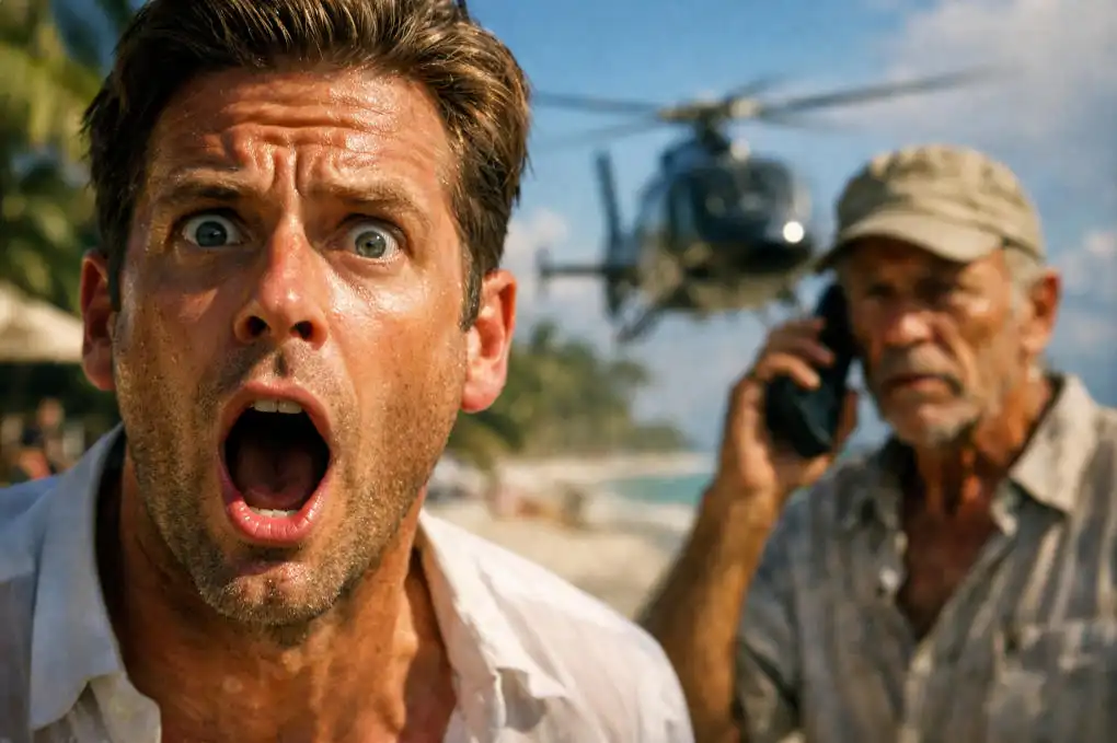 A billionaire told me to swim for his dogs’ dinner in front of a crowd of millionaires filming my humiliation… But the half-dead “sea trash” they’d pulled from the ocean that morning owned the island. The invitation had arrived on heavyweight cardstock, embossed in gold, like it had been pressed by hands that had never touched anything cheap. You are cordially invited to a private gathering — Halston Cay — an exclusive weekend of connection, conversation, and culture among individuals of distinction. I’d read it twice. Then a third time. I wasn’t the kind of man who got invited to places like that. Not yet. Not officially. I’d built my company from a studio apartment with bad plumbing and good WiFi. Twelve years of grinding, of fourteen-hour days and sleeping on an air mattress next to my desk because it was faster than commuting home. Twelve years of people telling me my idea was too niche, my timing was wrong, my background wasn’t the right kind of impressive. Then the app hit a million users. Then five million. Then the acquisition offer came in, and suddenly the same people who’d walked past me at conferences were calling to grab coffee. I’d taken the acquisition. I’d paid every employee a bonus before I touched a cent. And then, for the first time in my adult life, I had space to breathe. The invitation had arrived three months after the deal closed. I’d said yes out of curiosity. Curiosity, and something quieter — the hope that maybe I’d finally arrived somewhere that felt like belonging. That hope lasted about six hours. Halston Cay was exactly what the name promised. Forty acres of tropical perfection. White sand so clean it looked curated. Palm trees at angles that seemed architectural. A main villa that had more glass than walls, open to the ocean breeze, staffed by people who moved like they’d been trained not to be noticed. The guests were what I’d expected and worse. Hedge fund architects. Third-generation real estate dynasties. Venture capitalists who’d never coded a line but owned platforms built by people who had. A senator’s son. A musician whose wealth had long since eclipsed his music. Women who wore simple clothes that cost the same as my first car. Men with the kind of confidence that came not from achievement, but from having never been told no. I’d navigated boardrooms for over a decade. I knew the dynamics of power in a room. But those were professional arenas. There were rules there. Masks, at minimum. This was different. This was what happened when the masks came off. The first evening had been fine. Drinks on the terrace. Careful conversation. Everyone performing their version of effortless success. I’d shaken hands and traded talk about markets and travel and the terrible burden of deciding where to park capital when everything was overvalued. I’d felt like a visiting exhibit. Looked at. Assessed. Not quite included. Grant Whitlock had made it obvious within two hours. He was the kind of handsome that came with a personal trainer, a good tailor, and a genetic inheritance of straight teeth. His family had made their money before money was something you talked about making — it simply existed, like the weather, something that had always been there and always would be. He called me “tech boy” the first night, laughing when he said it, like the nickname was a gift I should be grateful for. I’d smiled and said nothing. Because I knew how to wait. The second morning brought a disturbance. I was on the beach, coffee in hand, watching the sunrise do what sunrises do on tropical islands — make everything look like it was made for a postcard — when the jet ski operators spotted something near the buoy line. A man. Drifting. Half on a piece of debris, half on will alone. They pulled him out of the water and brought him to shore, and he was everything wealth was not — worn, salt-soaked, trembling, eyes half-closed, lips cracked from sun and dehydration. He looked like he’d been in the ocean for a day. Maybe more. The staff gathered uncertainly. Grant Whitlock appeared with a drink already in his hand, even at that hour, and took one long look at the man and sighed. “Great,” he said. “Someone call the staff. We’ve got sea trash.” I put my coffee down. “He’s a person,” I said. Grant looked at me with the expression of someone who’s just been interrupted by the help. “Relax. We’ll deal with it.” “His lips are cracked,” I said. “He needs water. He needs shade.” Grant’s expression sharpened slightly. The performance of casual indifference dropped half a centimeter. “You want to play hero?” he said. “Fine. But keep him away from the main house. The vibe matters.” The vibe. I walked to the man myself. I crouched beside him. His eyes found mine — not confused, not panicked, but present in a way that surprised me. He was more there than his condition should have allowed. “You’re safe,” I said. “Can you walk?” He nodded once. I helped him to his feet, guided him to a shaded chair near the service area, and brought him a plate of food from the breakfast spread. Eggs. Fruit. A glass of cold water and then another. He ate with the quiet dignity of someone who understood the weight of being cared for. “Thank you,” he said. His voice was steady. Low. Like a man who chose his words carefully because he’d learned their value. I nodded and left him to rest. I didn’t ask his name. He didn’t offer it. I thought he was a fisherman. A sailor, maybe. Someone whose boat had gone wrong and who had been delivered to us by the sea. I thought wrong. By midday, the group had gathered at the shore. Drinks. Music from a portable speaker. Someone had arranged beach chairs in a loose arc. The dogs — two enormous animals, some expensive breed I didn’t recognize, handlers nearby — lounged under a wide umbrella, bowls empty, their massive heads resting on their paws. The part