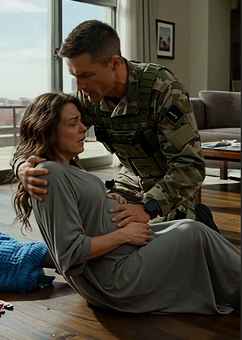“Maya.” His voice was low, close, careful. His hand — large, warm, still smelling faintly of fuel and aircraft and long distance — came to rest on her shoulder. Not grabbing. Not pulling. Just there. Present. Solid. “Maya, look at me. I’ve got you. You’re okay. Is the baby — are you—”