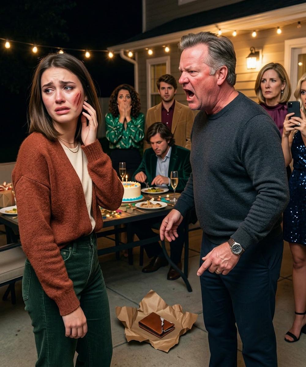 And then the sound cracked across the patio — sharp and flat and final, like a board splitting — and my head was turned sideways, and the champagne flute near my elbow was falling, and a voice was saying: “What kind of worthless junk is this? Three months and this is all you could get me?”